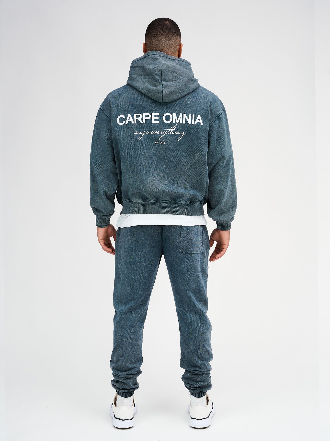 Definition 2.0 Zip Hoodie Petrol Blue Acid Wash