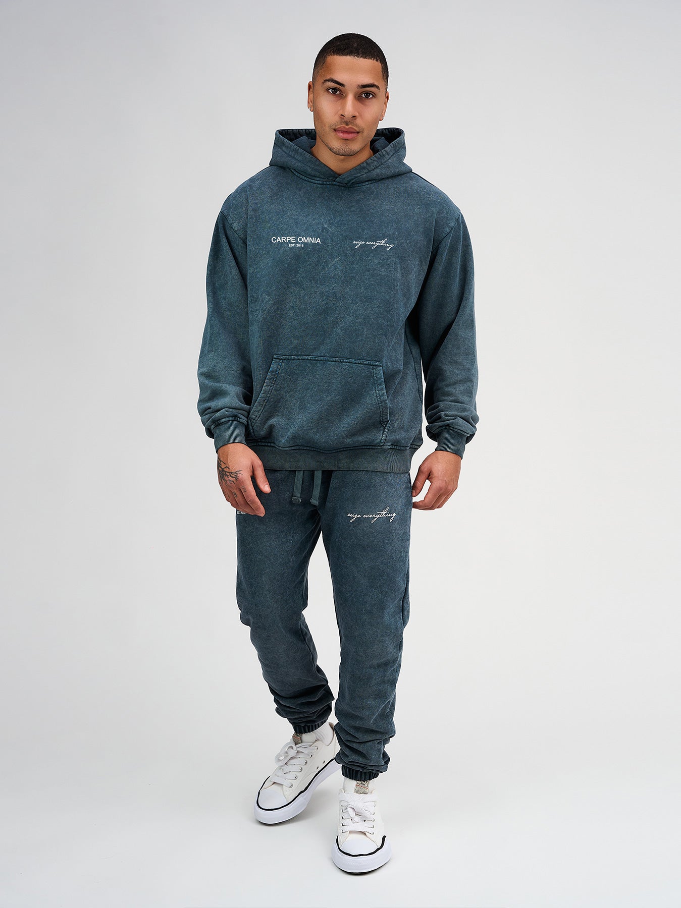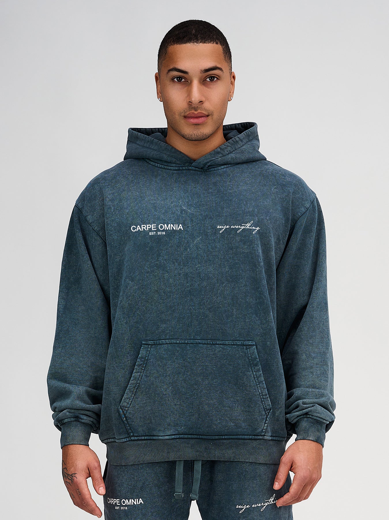 Definition 2.0 Hoodie Petrol Blue Acid Wash