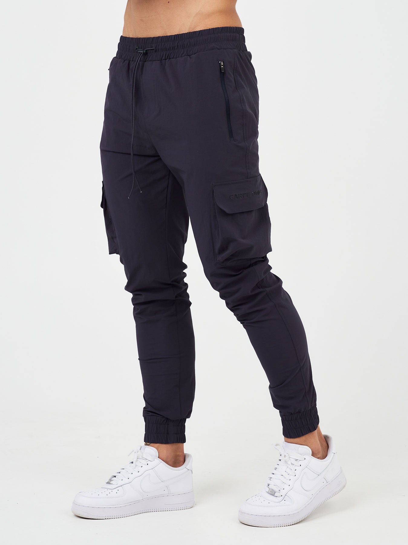 Dark Grey Lifestyle Nylon Cargo Pants with CARPE OMNIA Pocket.